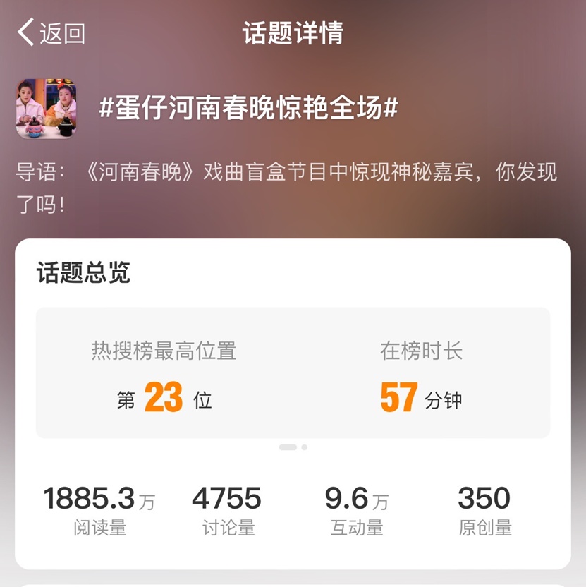 值得一提的是,在《戏曲盲盒》环节,蛋仔变身金枝、秦琼、吕布等7位经典戏曲角色,在与陈丽君、李云霄、于魁智等艺术家的创新演绎下,让中国的传统戏曲文化在新时代有了新表达。节目播出后,#蛋仔河南春晚惊艳全场#这一话题冲上热搜,这也是传统文化与年轻化IP结合的一次创新性探索。据透露,《蛋仔派对》官方还将免费赠送河南春晚同款秦琼戏曲蛋皮肤,玩家可以在游戏中近距离感受传统戏曲的魅力。