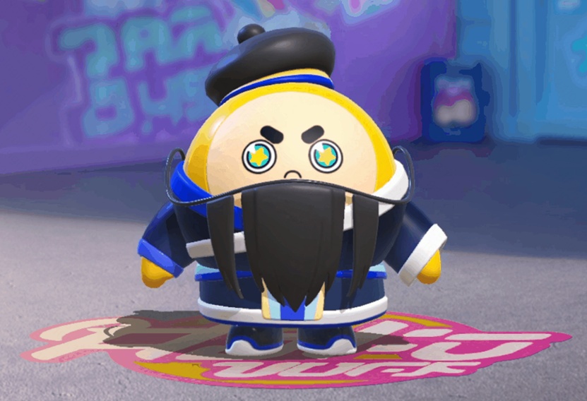戏曲蛋“老生三家店”的设计来源于京剧《三家店》的老生角色——秦琼。这一外观一方面承袭了老生的形象特点,中年男性,戴三绺黑胡子,身着黑色戏服,另一方面保留了蛋仔圆乎乎的可爱形象,并且结合年轻化的视觉语言以及年轻人喜欢的元素赋予了历史人物更鲜活的生命力,让年轻人们重新认识自己的民族文化,热爱自己的民族文化,甚至将民族文化融入到生活、情感和行为里去。