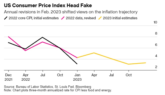 然而,这一数据释放的积极信号最终被证明是假的。经过修正后,3.1%被重新计算为更高的4.3%。四天后,1月份的核心CPI年化增长率也被修正为5.1%。突然间,围绕通胀和利率前景的基调发生了转变。