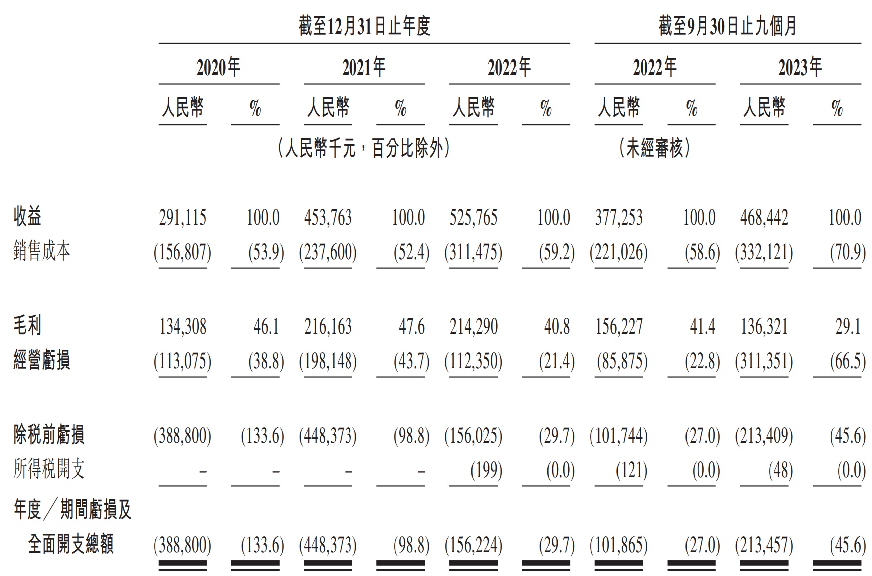 财务方面,于2020年度、2021年、2022年及2023年截止9月30日止九个月,百望云的收入分别约为人民币2.91亿元、4.54亿元、5.26亿元及4.68亿元。同期年度/期间亏损分别约为人民币3.89亿元、4.48亿元、1.56亿元及2.13亿元。