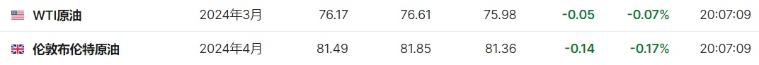 3. 截至发稿,WTI原油跌0.07%,报76.17美元/桶。布伦特原油跌0.17%,报81.49美元/桶。