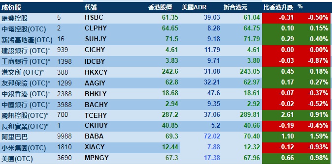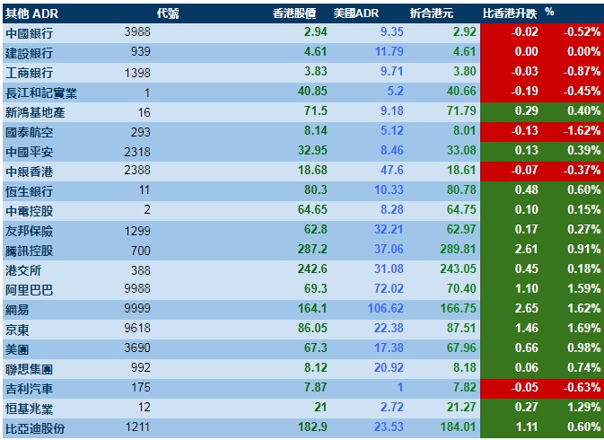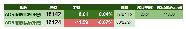 智通财经APP获悉,周五美股三大指数收涨,港股ADR指数跟随上涨,按比例计算,收报16142点,较香港收市升6.01点或0.04%。