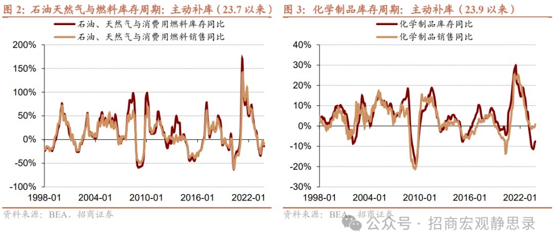 1)石油、天然气与消费用燃料:23年7月进入主动补库(石油行业较为特殊,仅存在主动去库和主动补库阶段),截至11月处于主动补库。