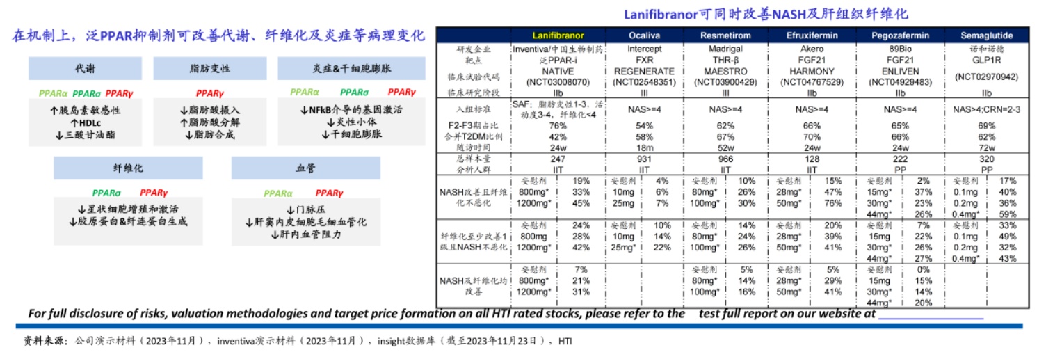 PPAR激动剂也颇有看头,进度最快的是中国生物制药子公司正大天晴向Inventiva引进的Lanifibranor。