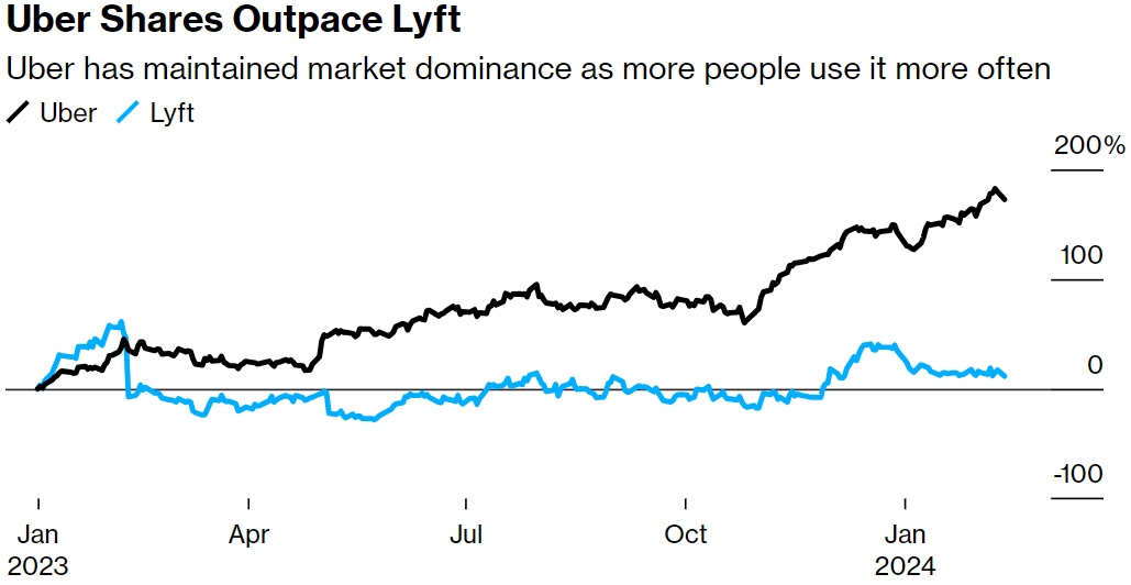 过去12个月,Lyft的股价上涨了约15%,落后于涨幅超过一倍的优步。