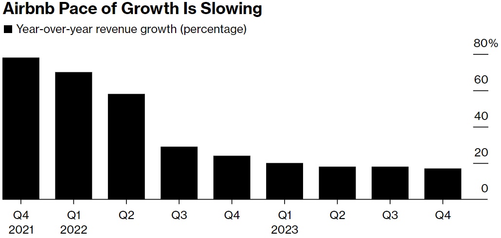 爱彼迎预计2024年一季度的营收在20.3 - 20.7亿美元之间,超过分析师平均预期的20.2亿美元。然而,该公司表示,由于去年同期的增长特别强劲,预计预订的住宿和体验数量将比去年第四季度有所放缓。