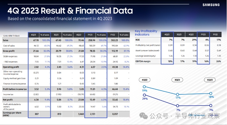 但其2023全年仍在亏损中,SK海力士2023年实现营收32.766万亿韩元,经营亏损7.73万亿韩元,经营利润率-24%。