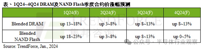 整体来看,存储价格在2024年将基本延续价格季度环比增长趋势,2024年存储原厂扭亏为盈将指日可待。