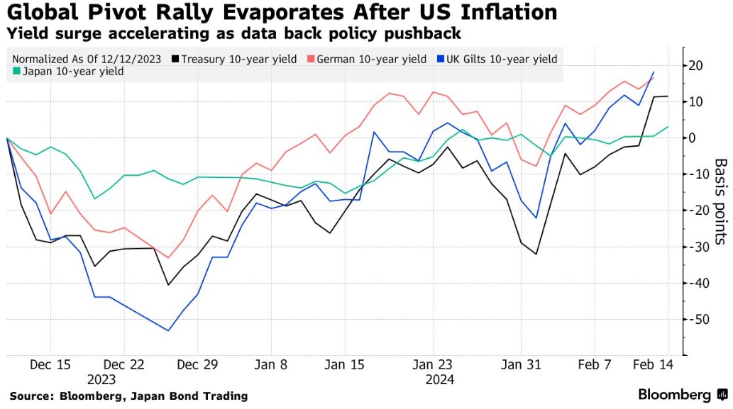 智通财经APP注意到,美国通胀数据抹去了去年12月开始的全球债券上涨的最后余波,当时市场希望美联储终于转向降息。