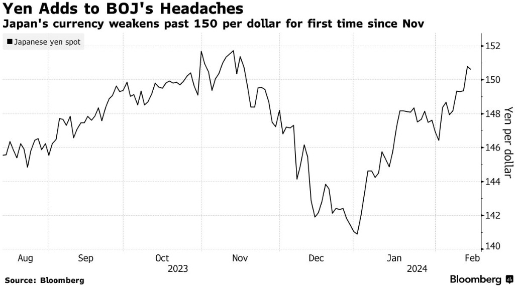 智通财经APP注意到,日元兑美元迅速跌破150,令日本央行面临更加复杂的局面。目前日本央行正在考虑2007年以来首次加息的最佳时机。