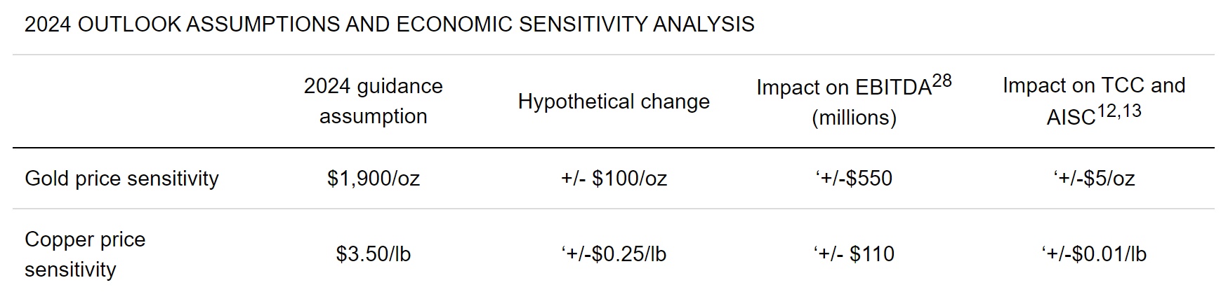 巴里克黄金预计2024年黄金产量为390至430万盎司。该公司还预计2024年黄金价格约为每盎司1900美元,铜价格为每磅3.50美元。