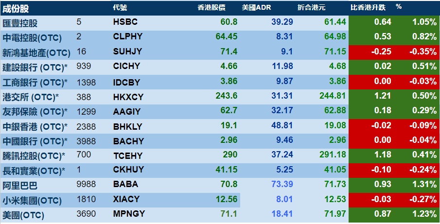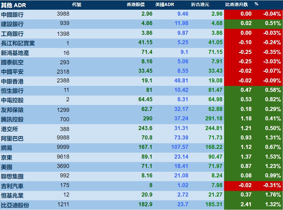 智通财经APP获悉,周一美股三大指数收涨,港股ADR指数跟随上涨,按比例计算,收报16236点,较香港收市升100.07点或0.62%。