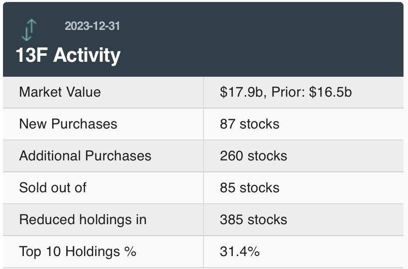 智通财经APP获悉,根据美国证券交易委员会(SEC)披露,桥水基金(Bridgewater Associates)递交了截至2023年12月31日的第四季度持仓报告(13F)。