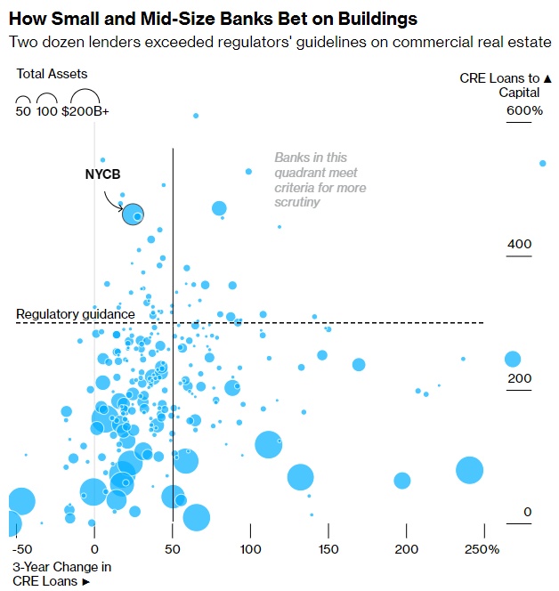 在纽约社区银行1月底大幅削减股息并增加问题贷款准备金,令股东感到意外之后,银行在商业地产方面的敞口成为投资者关注的焦点。据报道,这些举措是在OCC不断加大的幕后监管压力下做出的。