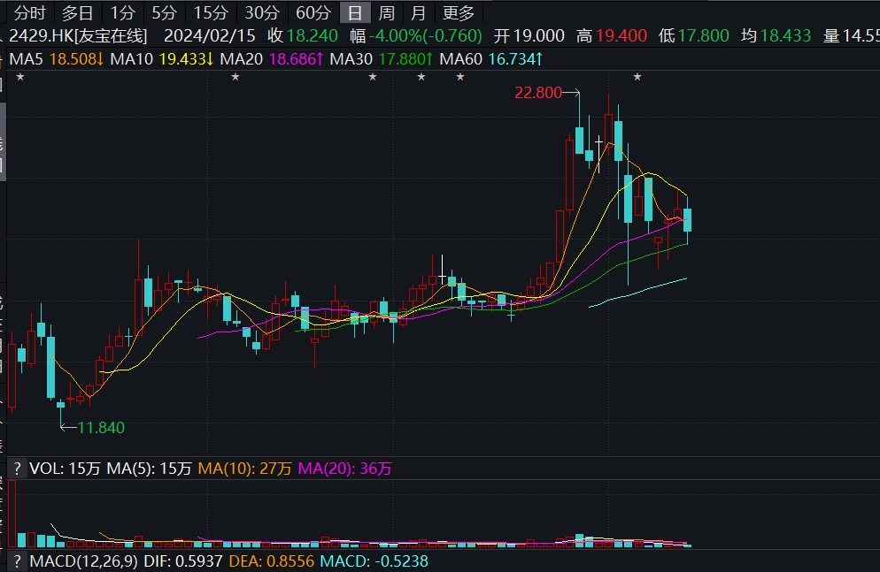 以“大起大落”形容友宝在线(02429)近一个月的股价表现最贴切不过。其股价在1月19日起的6个交易日内狂拉37.61%,但此后的6个交易日,友宝在线股价持续回调,最大回撤幅度高达27.72%。这说明,股价来到这个位置后,多空双方已展开了剧烈“交战”,市场对友宝在线的真实价值已有明显分歧。