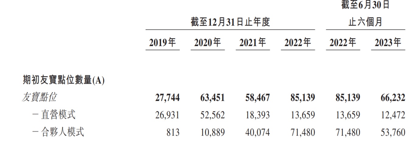 在2020年之前,友宝在线主要以直营模式实现对点位的扩张,但进入2020年后,疫情的反复让经营环境充满不确定性,为了降低自身的经营风险并加速扩张市场,友宝在线推出了合伙人模式。与直营模式不同,在合伙人模式下,合伙人负责点位场地的寻找,并负担点位开发成本以及场地使用费及水电费,而友宝在线则对合伙人扣除其负责的费用及成本后获得点位的交易商品总额进行分成。