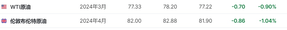 3. 截至发稿,WTI原油跌0.90%,报77.33美元/桶。布伦特原油跌1.04%,报82美元/桶。