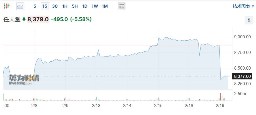 该股周一在东京股市一度下挫8.5%,创下一年来最大盘中跌幅。据报道,这家总部位于京都的公司告诉其游戏发行合作伙伴,其下一代游戏机Switch 2的发布将从今年最后一个季度推迟到2025年初。任天堂的一些合作伙伴被建议最早在2025年3月之前不要期待这款尚未公布的游戏机。