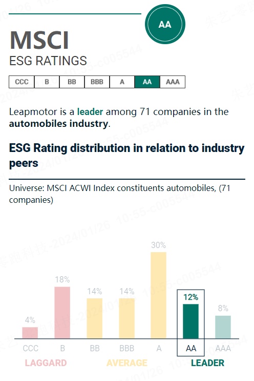 图注:零跑汽车MSCI ESG官方评级结果,处于行业领先位置