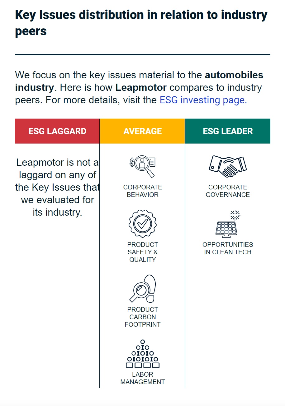 图注:零跑汽车在公司治理、清洁能源机遇等ESG关键议题表现领先行业