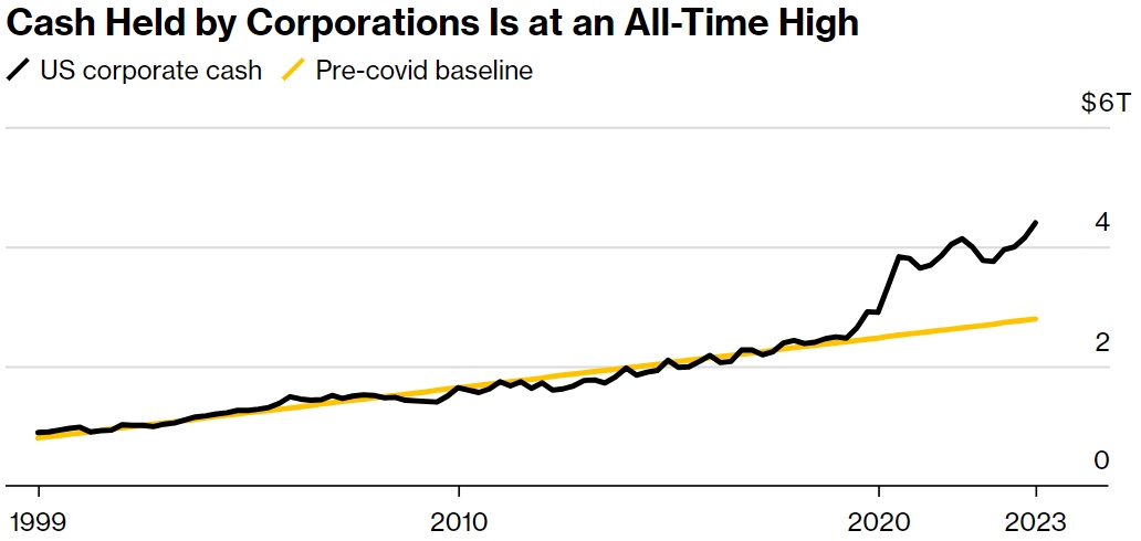 再加上企业高管在疫情爆发后似乎不急于花钱,以及存款人仍然担心银行体系的状况,所有迹象都表明,2024年将是又一个现金大年。