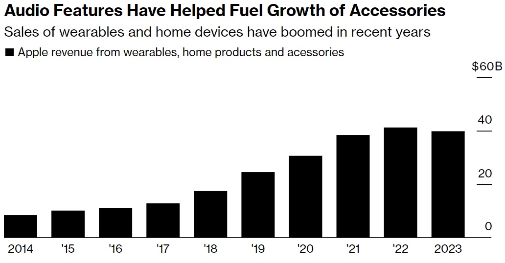 据估算,AirPods现在每年为苹果带来超过150亿美元的收入,引领着个人音频产品市场。