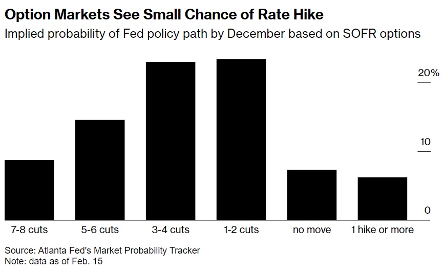 Bloomberg Intelligence对短期利率期权的分析显示,在上周发布超预期的CPI和PPI数据之后,交易员们开始消化美联储2024年重新加息的可能性。