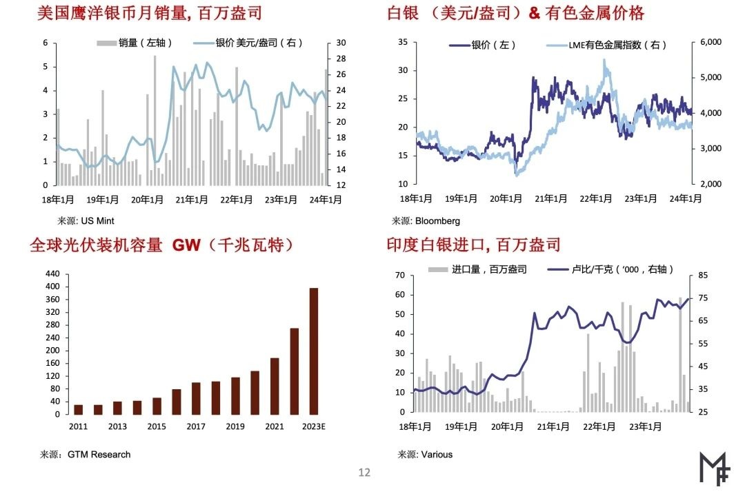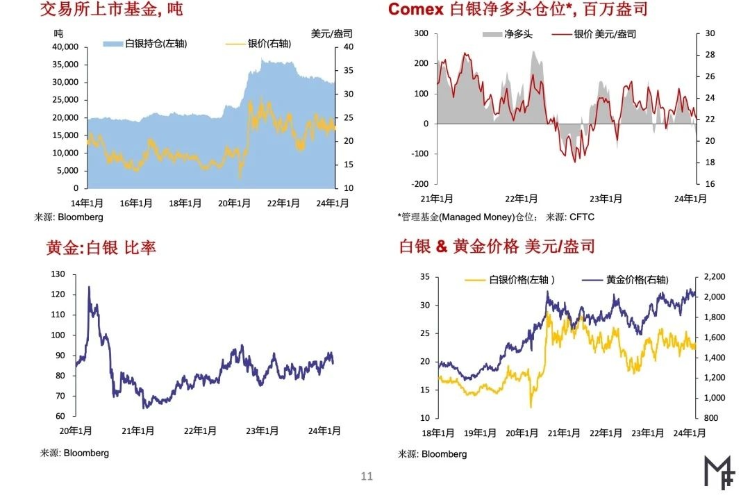 不过预计2024年后期银价回升幅度将受限,难以突破2023年以来一直存在的强阻力位26美元/盎司。该研判建立在一定的假定之上。