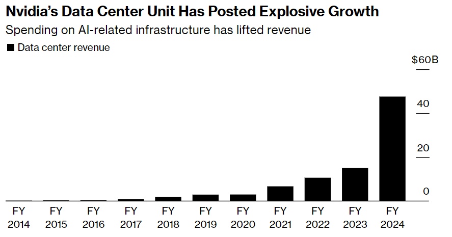 随着全球迈入AI时代,数据中心业务已经成为英伟达最核心业务,而不是此前重度依赖游戏显卡需求的游戏业务。英伟达在细分业务方面,英伟达为全球数据中心提供A100/H100芯片的业务部门——数据中心业务部门,曾经可谓是英伟达“副业”(自英伟达创立之处,游戏业务一直是英伟达的最重要业务),已经成为该科技巨头整体营收的最强大贡献力量。