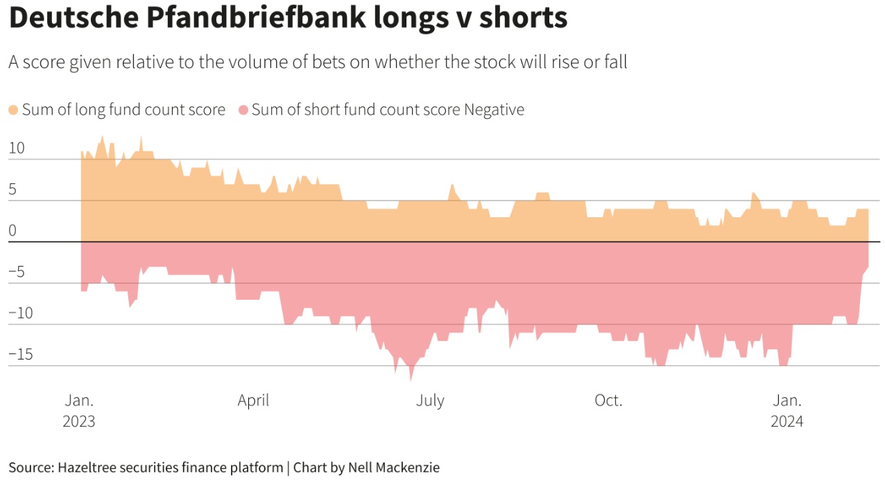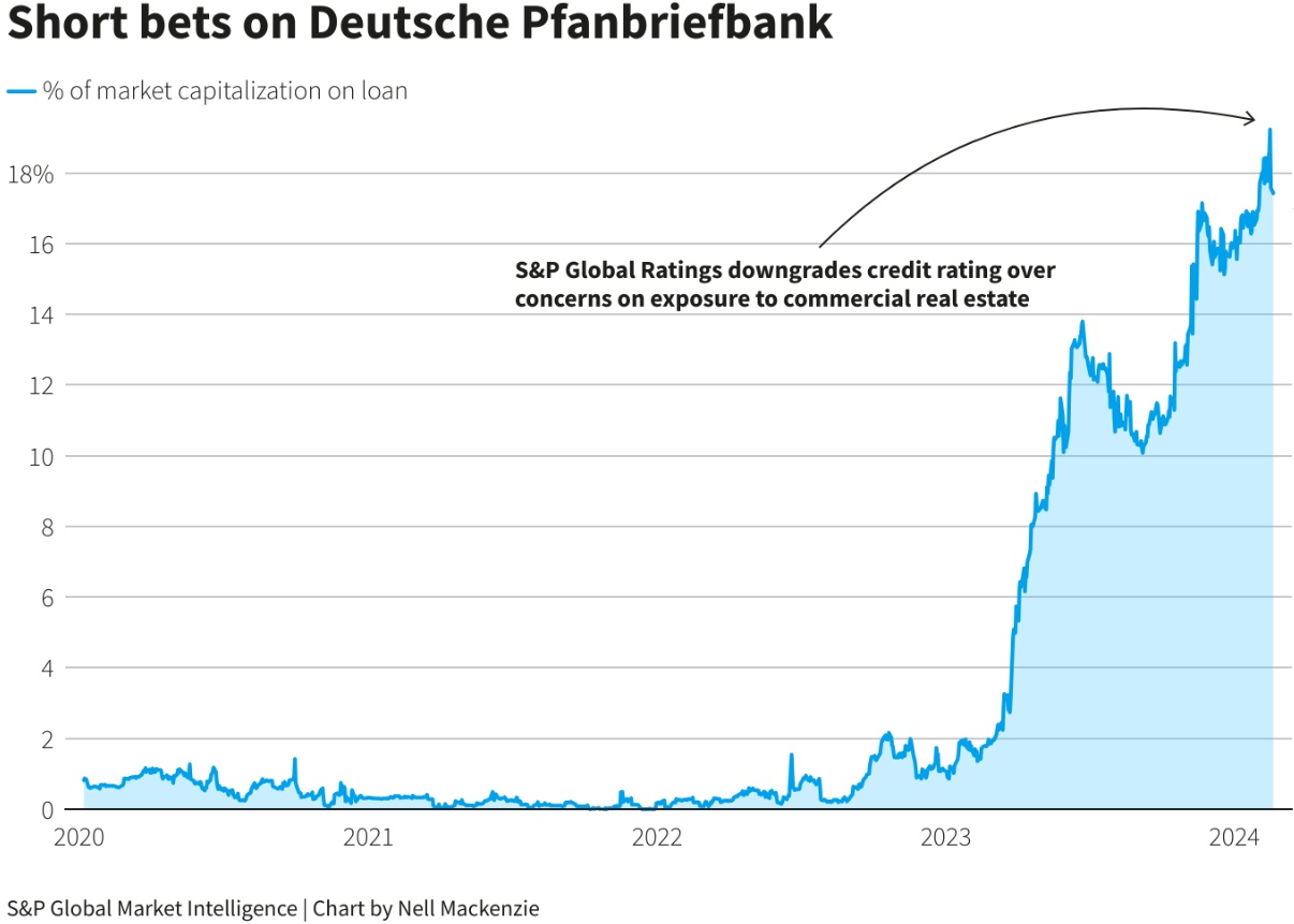 智通财经APP获悉,周二公布的数据显示,卖空者对德国银行Deutsche Pfandbriefbank(简称“PBB”)的看空押注创下新高,目前这家德国银行正努力应对商业地产市场的低迷。PBB是一家专门从事房地产和公共部门融资的德国银行。