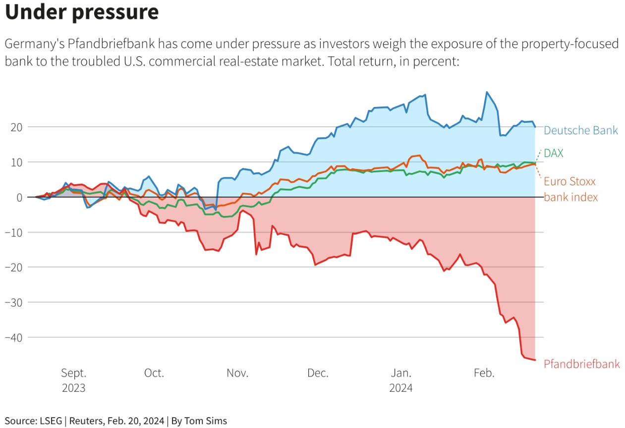标准普尔上周下调了PBB的信用评级,理由是担心该银行在商业房地产方面的风险敞口。此后,PBB的股价在2月份下跌了30%,其中一只债券的价格跌至创纪录低点。