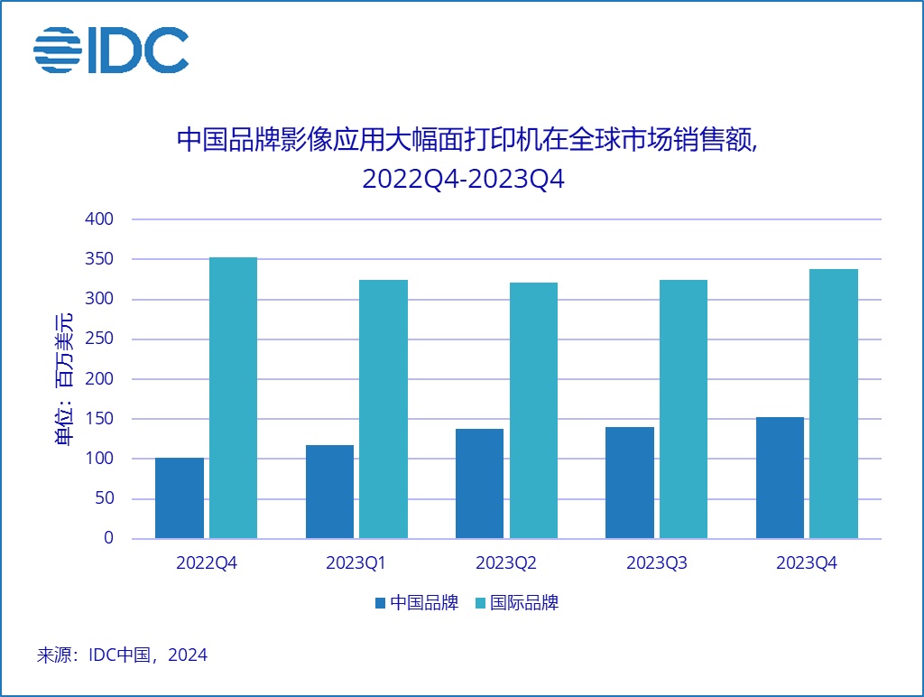 年,全球影像大幅面打印机销售金额同比微升0.2%。期内,受经济衰退影响,国际品牌销售额同比下滑5.2%。相反,在疫情消退背景下,中国品牌为世界注入新动力,销售额逆势上升,同比增长17.0%,占全球市场份额的28.3%。