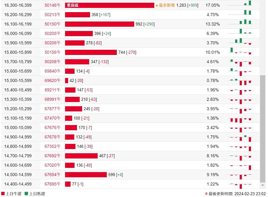 牛证街货重货区与最多新增均在16300-16399区间,该区间最新牛证数量为1283张,较上一交易日增加909张。