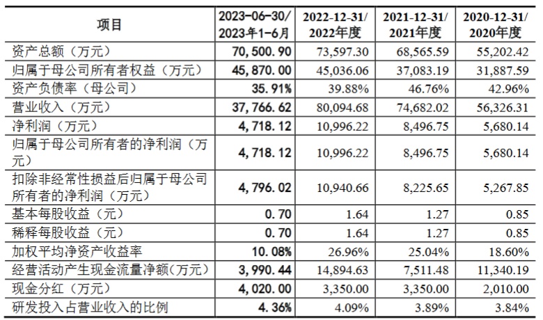 财务方面,晶讯光电于2020年、2021年、2022年以及2023年1-6月营业收入分别约为5.63亿元、7.47亿元、8.01亿元、3.78亿元,同期,净利润分别约为5680.14万元、8496.75万元、1.10亿元、4718.12万元。