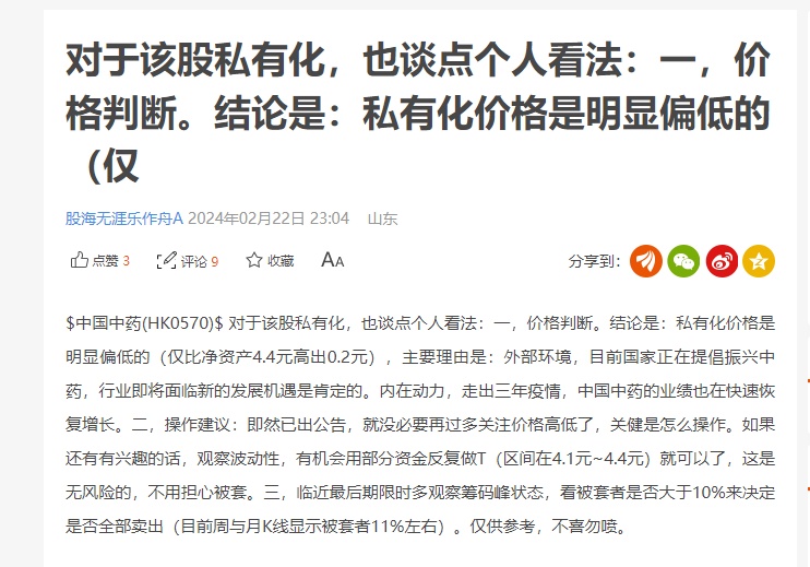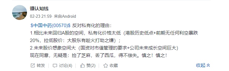 相当乐观的成长空间,叠加国资对市值管理的要求,中国中药的股价无疑极具想象空间。目前的私有化价格,自然令投资者感到不满。