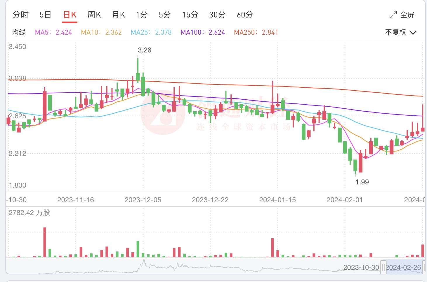 其实,今年以来,京城机电股份在二级市场上的表现并不乐观,单单1月份整月,公司股价就已累跌超15%。不过在2月5日创下1.99港元的年内低位后,公司股价便掉头向上,截至目前已累涨超20%,但相较于3.72港元的年内高位仍有较大差距。