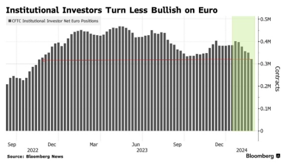 美国商品期货交易委员会(CFTC)截至2月20日当周的仓位数据显示,机构投资者将欧元多头头寸削减至2022年11月以来的最低水平。在过去的五周里,这些头寸一直在稳步下降。
