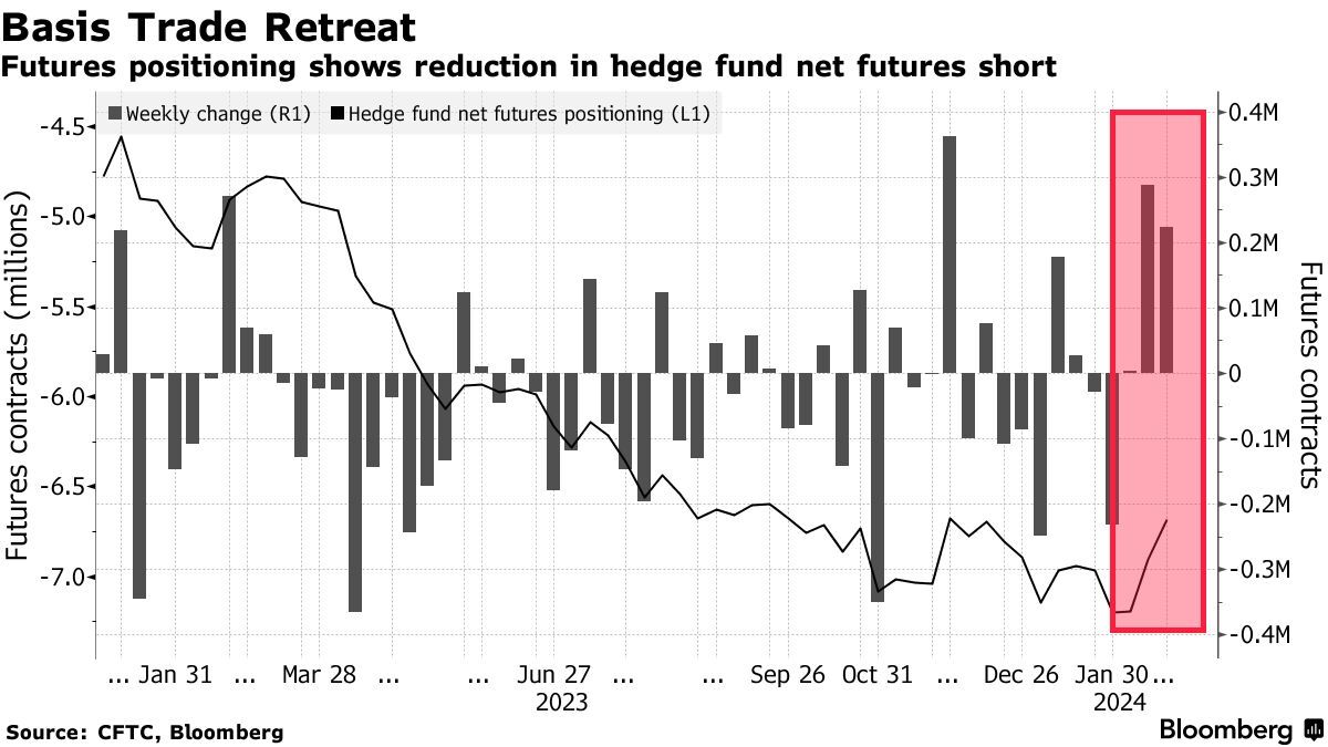 智通财经APP获悉,德意志银行表示,对冲基金对一种流行的交易策略的兴趣似乎正在消退,这种交易策略旨在从美国国债现货和期货之间的价差中获利。包括Steven
