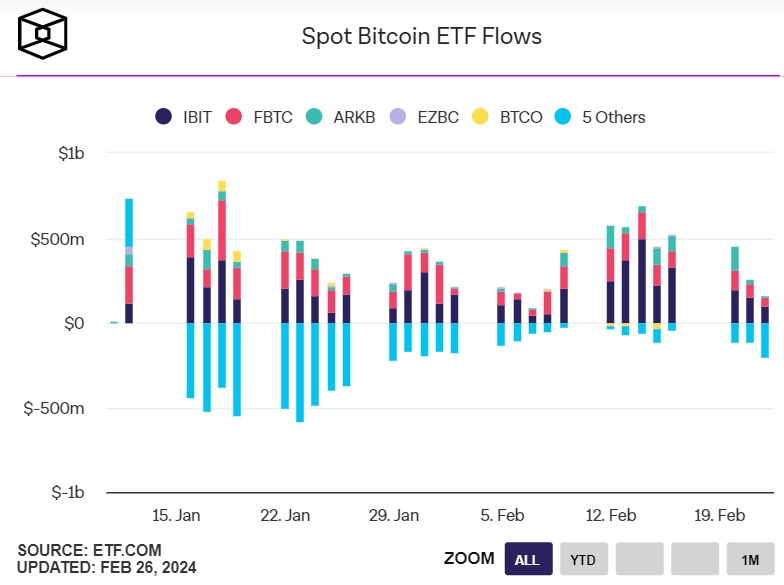 Balchunas还说,贝莱德的现货比特币ETF以13亿美元的交易量领跑。他说,当天早些时候,当贝莱德的ETF突破10亿美元大关时,它在“所有ETF中排名第11位(前0.3%),在股票中排名前25位”。他补充说:"对新的ETF来说,这个数字太疯狂了,10亿美元的交易量是大规模级别的,足以让(甚至是大的)机构考虑。"
