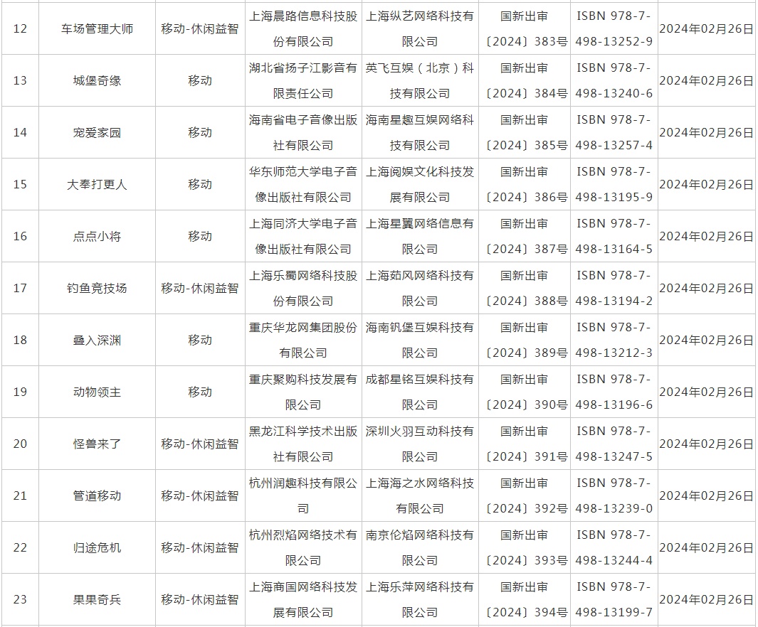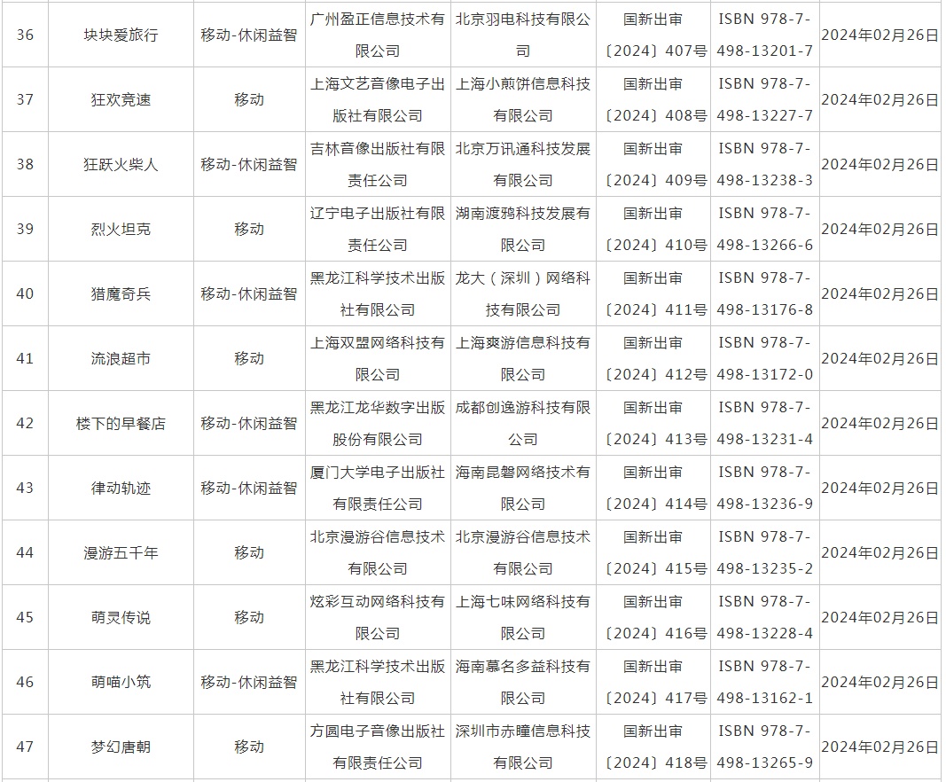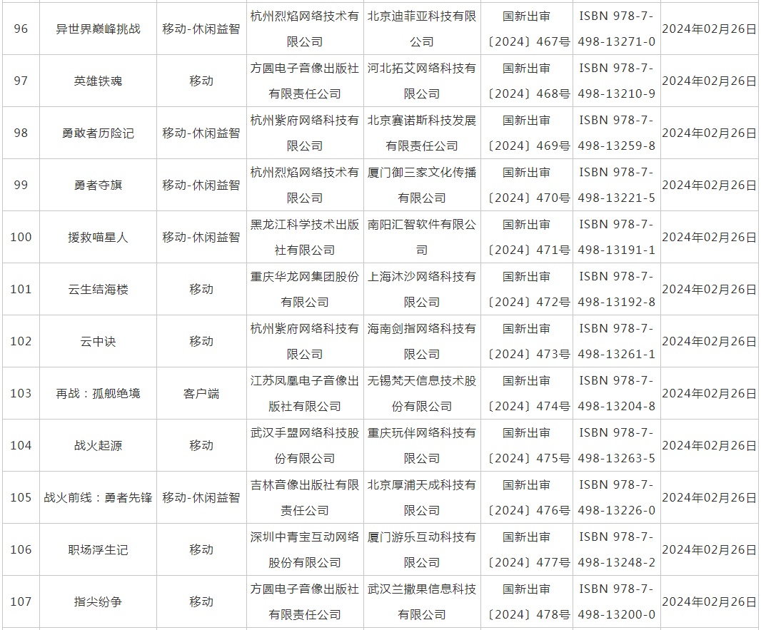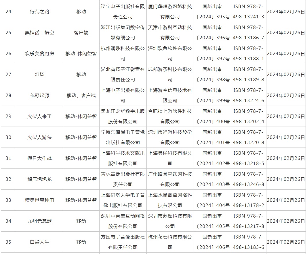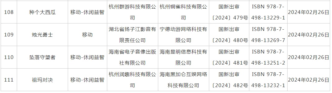 智通财经APP获悉,2月27日,国家新闻出版署发布2024年2月份国产网络游戏审批信息,共111款游戏获批。其中包括完美世界(002624.SZ)旗下的《完美新世界》、网易(09999)旗下的《天启行动》、中青宝(300052.SZ)旗下的《毕业之后》、《九州元意歌》、《梦境食旅》、《职场浮生记》等。
