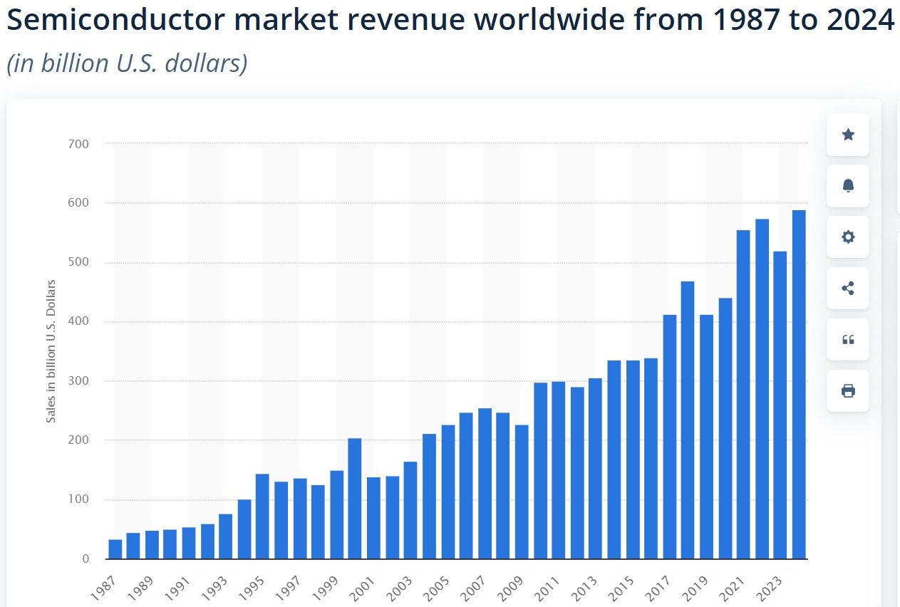 国际半导体产业协会(SEMI)则更加乐观,SEMI看好半导体市场在本十年末(即2030年)达到 1 万亿美元规模。SEMI预计从人工智能、自动驾驶和电动汽车、高性能计算到 6G 和人形机器人,对各种颠覆性的技术和新兴应用需求快速增长,将推动芯片产业链历史性扩张步伐。