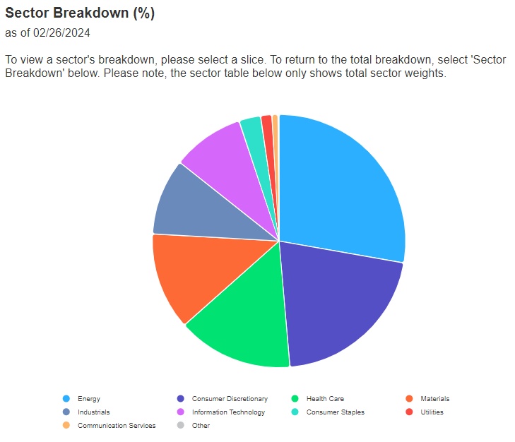 仓位数据显示,COWZ所持有的股票仓位中约27%与财务基本面强劲的能源股相关,包括瓦莱罗能源(VLO.US)和Phillips 66(PSX.US)等通常派息非常丰厚且手握大量自由现金流的能源股。其网站显示,非必需消费品类股票排名第二,其次是医疗保健类股票。