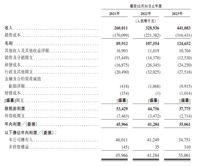 财务方面,于2021年、2022年、2023年,天聚地合的营业收入分别为2.60亿元、3.29亿元、4.41亿元人民币,同期净利润分别为4596.6万元、4128.4万元、3506.1万元人民币。