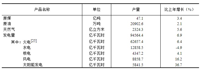 初步核算,全年一次能源生产总量48.3亿吨标准煤,比上年增长4.2%。