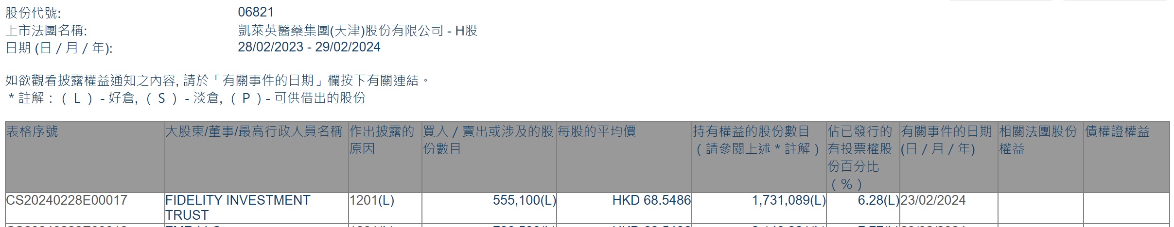 智通财经APP获悉,香港联交所最新资料显示,2月23日,FIDELITY INVESTMENT TRUST减持凯莱英(06821)55.51万股,每股作价68.5486港元,总金额约3805.13万港元。减持后最新持股数目约为173.11万股,最新持股比例为6.28%。