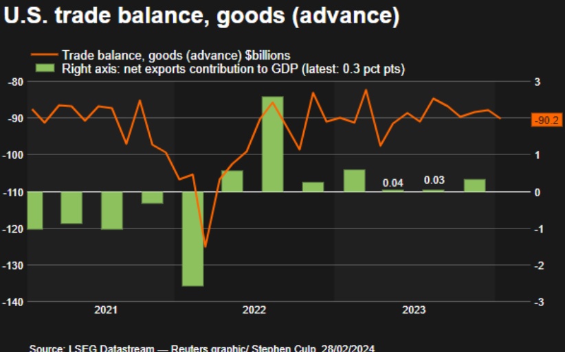 此外,1月份,美国非国防资本货物出货量出现三年多来最大降幅。消费者信心也有所恶化,1月份的贸易逆差似乎有所扩大。美国商务部人口普查局周三在另一份报告中表示,上月美国商品贸易逆差增加2.6%,至90.2美元。
