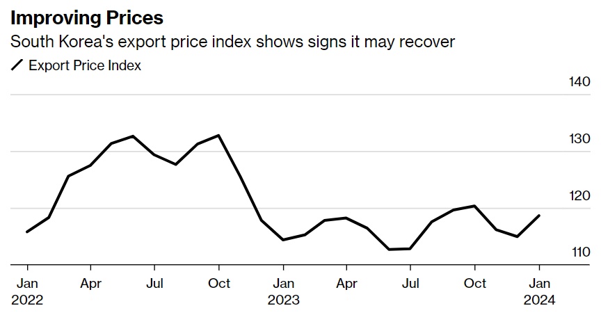 韩国是全球贸易的关键一环,因为韩国企业在各种供应链中都有广泛的定位。在半导体需求强劲的带动下,韩国出口从去年年底持续一年的低迷中反弹。尽管汽车出口量略有下降,但显示器销量仍在上升。经济复苏使人们对韩国经济今年将加速增长抱有希望。韩国央行上周维持了2024年韩国国内生产总值(GDP)将增长2.1%的预期,表明出口将出现复苏。据该央行称,如果这一趋势持续到2025年,将有助于经济增长2.3%。