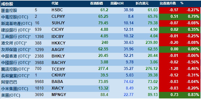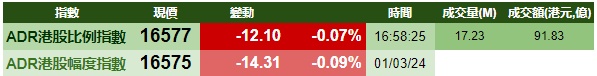 智通财经APP获悉,周五美股三大指数悉数上涨,港股ADR指数下跌,按比例计算,收报16577点,较香港收市跌12.10点或0.07%。