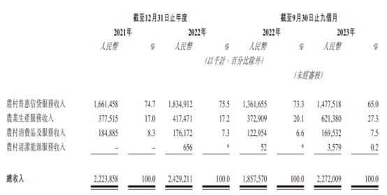 目前,公司的客户多数为小农户及农村小微企业主,自推出农村信贷服务以来,已经累计为农村信贷服务发放贷款总额达到1387亿元,且截至2023年首九个月止在贷余额约176.34亿元。