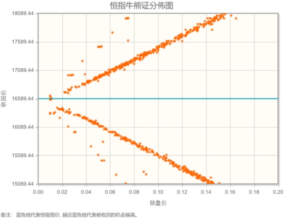 从恒生指数牛熊街货分布情况看,16589点位置,上方熊证密集区靠近中轴。国际机构预计年中前后美国出现首次降息,如果通胀出现反弹则时间点可能进一步推迟。恒生指数本周持续看涨。